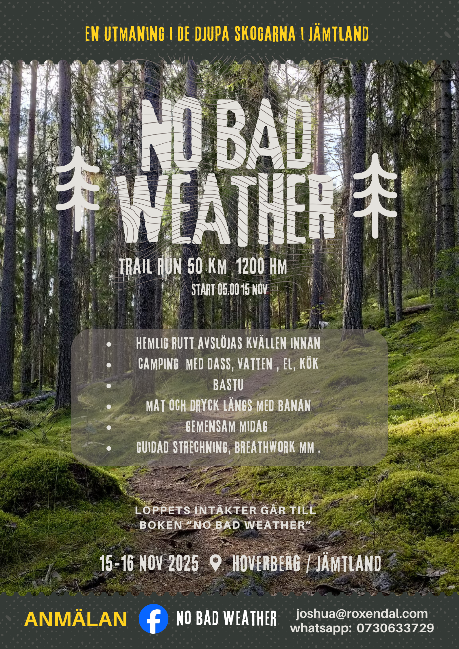 Ditt deltagande i gemenskapen och Ultra-loppet No Bad Weather hjälper till få boken i tryck och att sprida inställningen av att vi klarar mer än vi tror- och att INGET är omöjligt.